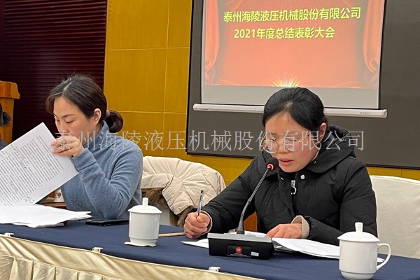 2022年1月20日上(shàng)午9時許,泰州海(hǎi)陵(líng)液壓機械股份有限(xiàn)公司在泰州賓館召(zhào)開2021年度會(huì)議暨年度(dù)總結表彰大會(huì),董(dǒng)事長丁克芳、董事會所有成員及全體職工出席會議!